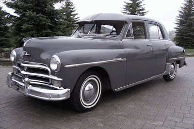 Alas, this was not the only family car. My father acquired an older model Plymouth - probably a 1950 model - with the super-sharp external visor. THIS car became my primary means of transportation. Perhaps because of the alarming number of miles being added to the Pontiac. Surely it couldn't have been the prodigious amount of fuel used; gasoline was only 16 cents a gallon in those days!